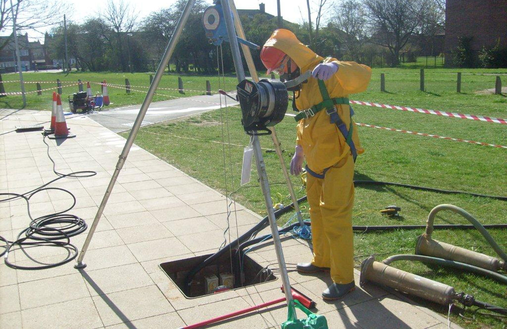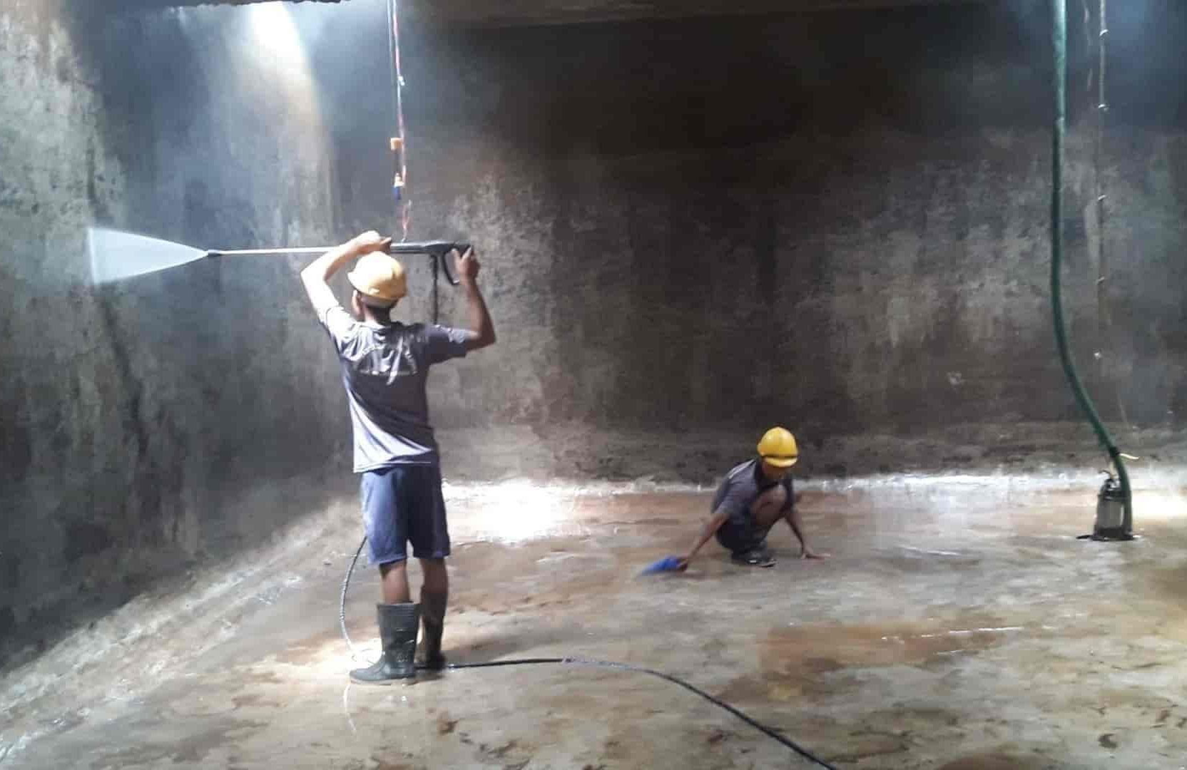 Includes sludge removal, scrubbing, disinfection, and drying.